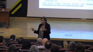 Akademik ve idari personelin katılımıyla gerçekleşen etkinlikte Prof. Dr. Hikmet Uğur Öner; kurum kültürünü ve kurum kültürünü oluşturan ortak özelliklerden söz ederek çalışanların kendilerini kuruma ait hissettiklerinde daha üretken, çözüm odaklı, kurumun çıkarlarını gözeten kişiler olacağını, aidiyet duygusunu pekiştiren kurum içi iletişimin sevgi ve saygı çerçevesinde sağlıklı bir iletişim ile sağlanabileceğini konuşmasında vurgulamıştır.